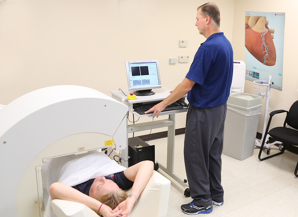 A nuclear stress test is similar to a routine exercise stress test in that it follows EKG tracings, but it also provides pictures of your heart. Our nuclear technician will place an IV in your arm when you first arrive and inject a radioactive substance. You will then lie down on a special table under a camera that detects radioactive material and will create heart images. The next step of the test is where you exercise on a treadmill while we monitor your heart rate, blood pressure, and heart rhythm.